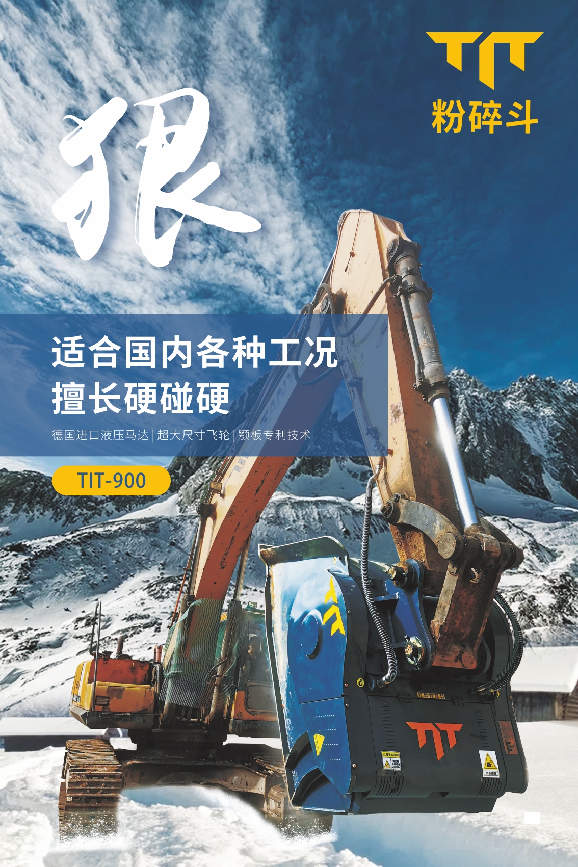 TIT,源自Titan的縮寫(xiě),原指古希臘神話(huà)中力大無(wú)窮的威猛之神,借意本產(chǎn)品剛勁有力,產(chǎn)能高效。TIT粉碎斗,也稱(chēng)破碎斗,顎式破碎斗,是一款創(chuàng)新型挖掘機(jī)屬具,掛于挖掘機(jī)大臂上,可快速將工程惰性材料破碎成極具價(jià)值的工程用料。隨著國(guó)內(nèi)基建行業(yè)展,基于市場(chǎng)對(duì)經(jīng)濟(jì)化、效率化、環(huán)保化材料的大量需求,破碎斗將廣泛應(yīng)用于多種物料破碎場(chǎng)景。 |